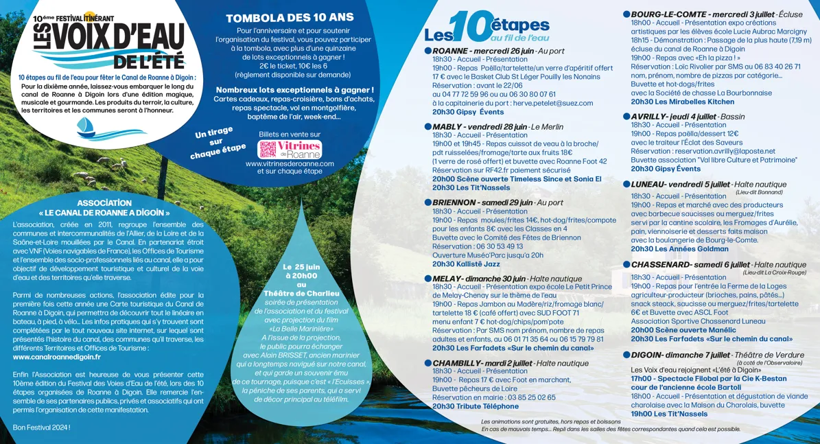 Infos complètes sur la page Facebook Festival Voix d'eau de l'été association canal Roanne à Digoin.