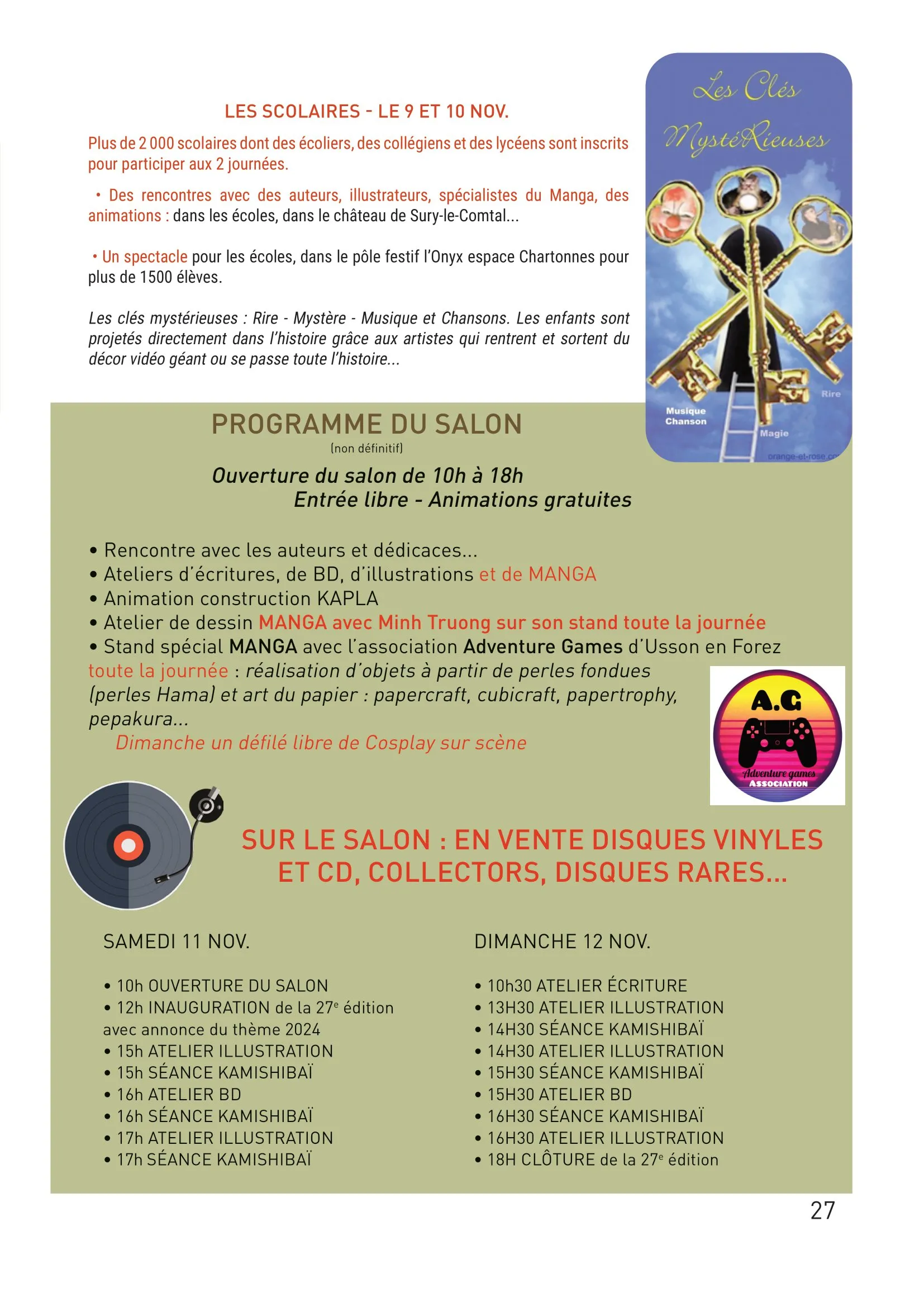 27ème Automnale du livre, salle des Sports - Route de Montbrison à Sury-le-Comtal, les 11 et 12 novembre 2023 !
