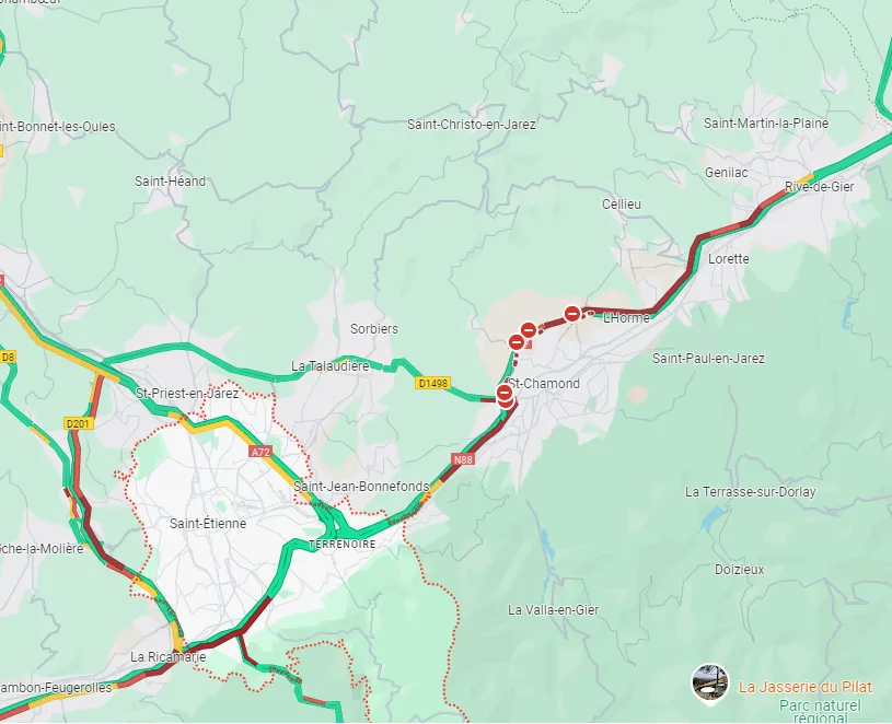3 km de bouchons recensés ce lundi matin sur l'A47 dans le sens Lyon/Saint-Etienne. En cause : un poids lourd qui aurait "traversé les voies au niveau de l'aire du Pays du Gier" précise la Préfecture de la Loire. Il n'y aurait pas de blessé selon un premier bilan.
