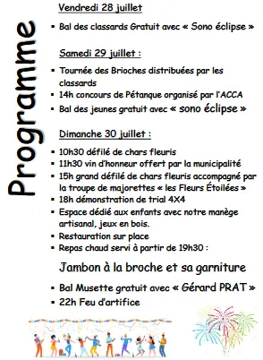 Fête patronale de Marcoux les 28, 29 et 30 juillet 2023 !