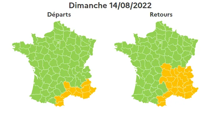Dimanche en revanche, la situation s'améliore puisque la journée est classée verte dans les deux sens au niveau national. C'est toutefois orange sur le pourtour méditerranéen dans le sens des départs, orange aussi sur le sud-est et l'Auvergne-Rhône-Alpes dans le sens des retours. Bison Futé prévoit un trafic saturé sur l'A7 en remontant vers Lyon entre 12h et 16h.