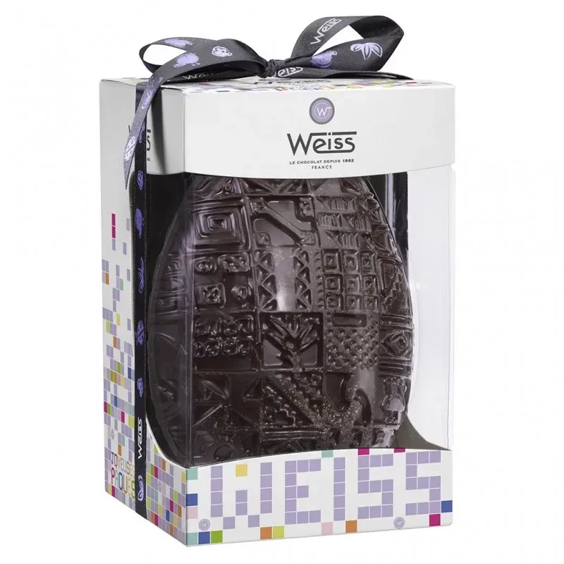 Œuf Weiss - Chocolat de Pâques noir 72% - 500gChocolat noir 72 % Ebène à l’intérieur : Valeur : 38,50 € |