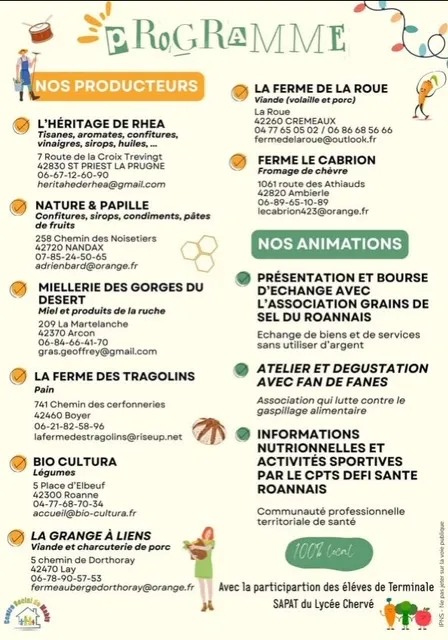 De 14h à 16h, un atelier cuisine viendra ouvrir l’après-midi, avant de laisser place, de 17h à 19h, aux producteurs locaux qui proposeront leurs savoureux produits : miel, confitures, pain, légumes, viandes et fromages.