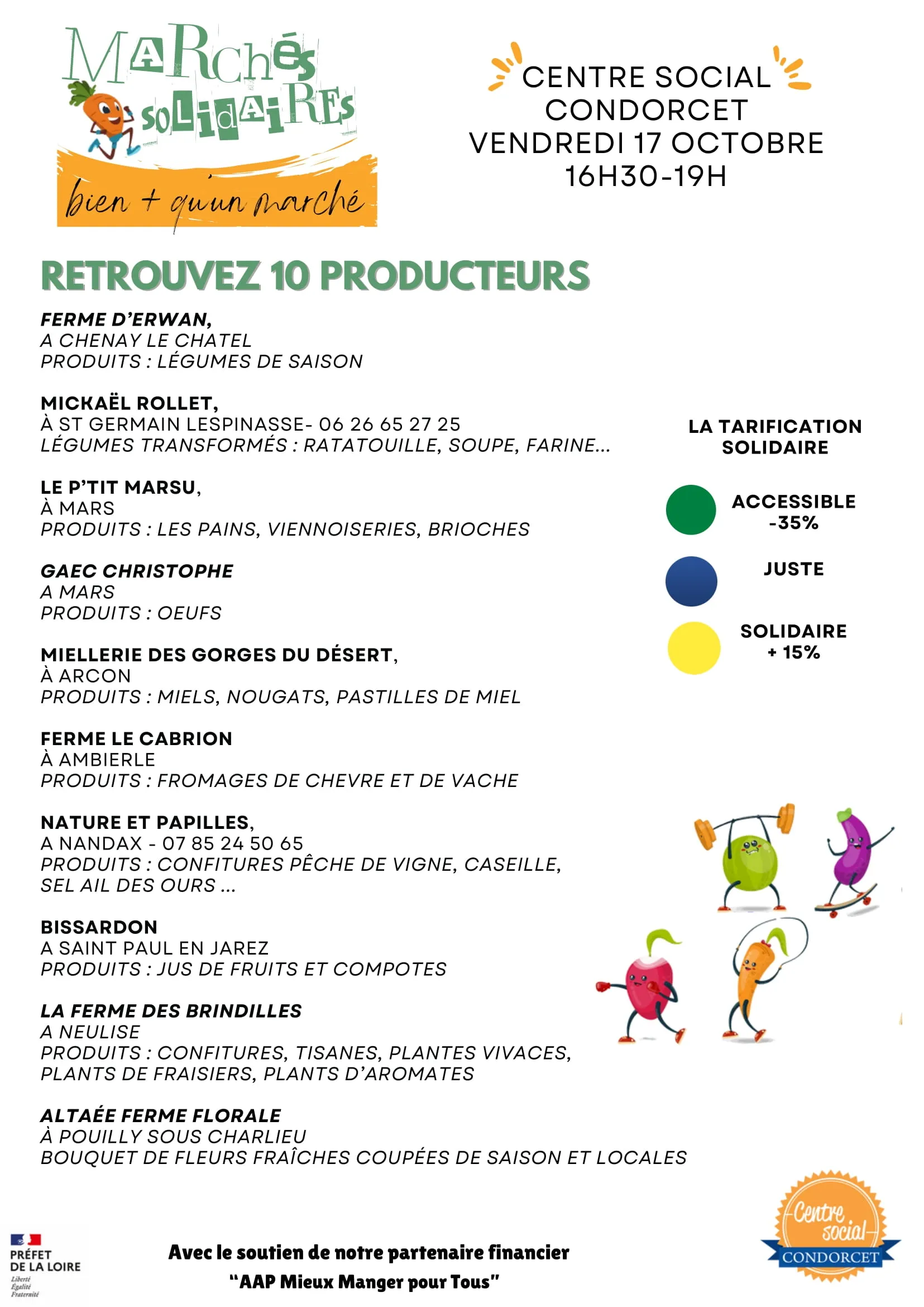 Le vendredi 17 octobre 2025, de 16H30 à 19H, direction le centre social de Condorcet à Roanne où vous pourrez découvrir une dizaine de producteurs locaux qui vous proposeront une tarification solidaire.