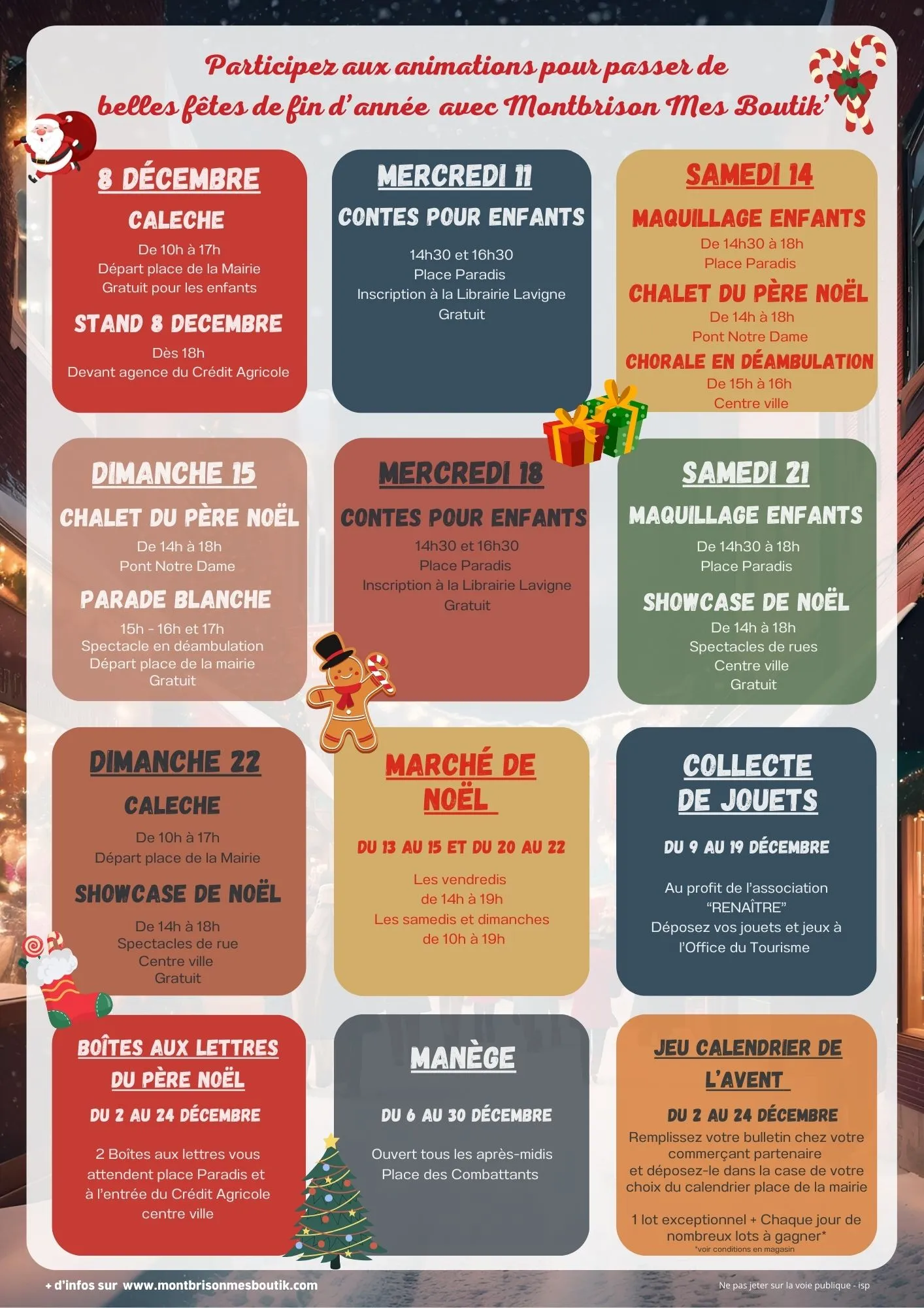 - Samedi 14 décembre : maquillage des enfants, chalet du Père Noel et Chorale en déambulation