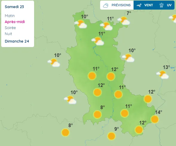 Si les températures baissent samedi, le soleil lui restera présent sur la Loire. En revanche, dimanche, il faudra faire face à de la pluie notamment le matin et des températures de 2 à 7 degrés.