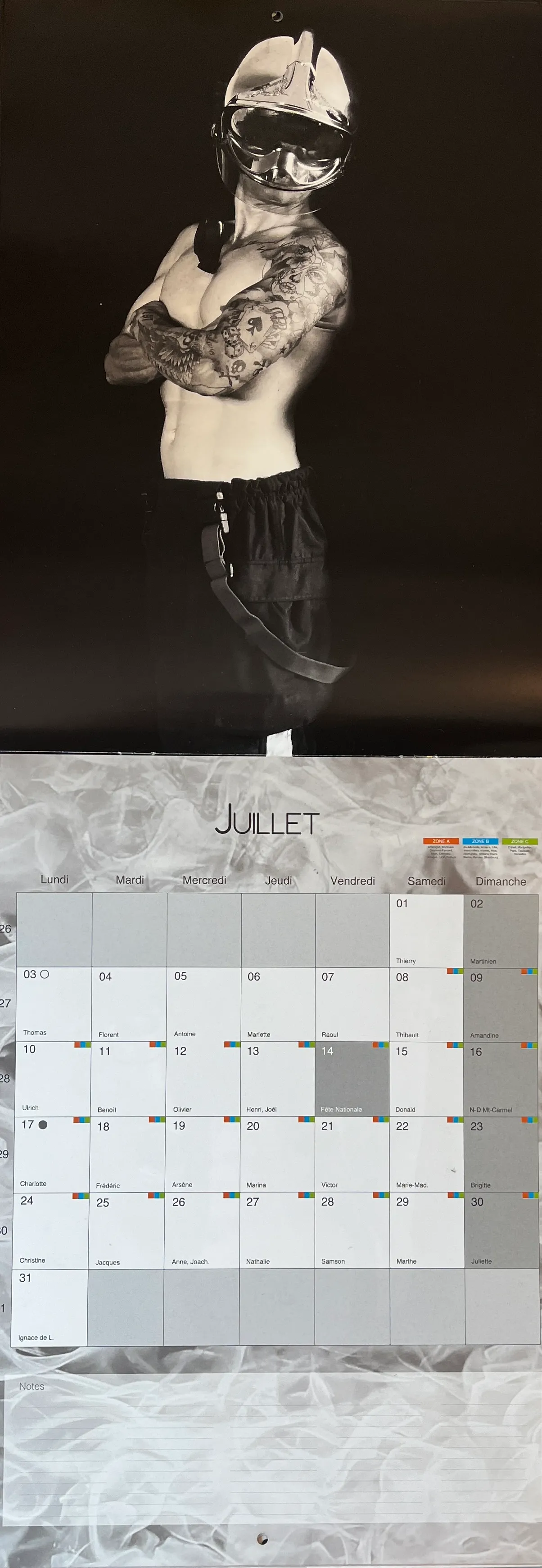 "On a voulu faire un calendrier à l'image des Dieux du stade. Ce sont des photos casquées, torse-nu, en noir et blanc des pompiers de Saint-Étienne. Ils vont sûrement aussi passer chez les gens pour vendre les calendriers, mais comme ils sont casqués difficile de voir leurs visages, mais vous pouvez leur poser la question" plaisante Sylvain Dufour.