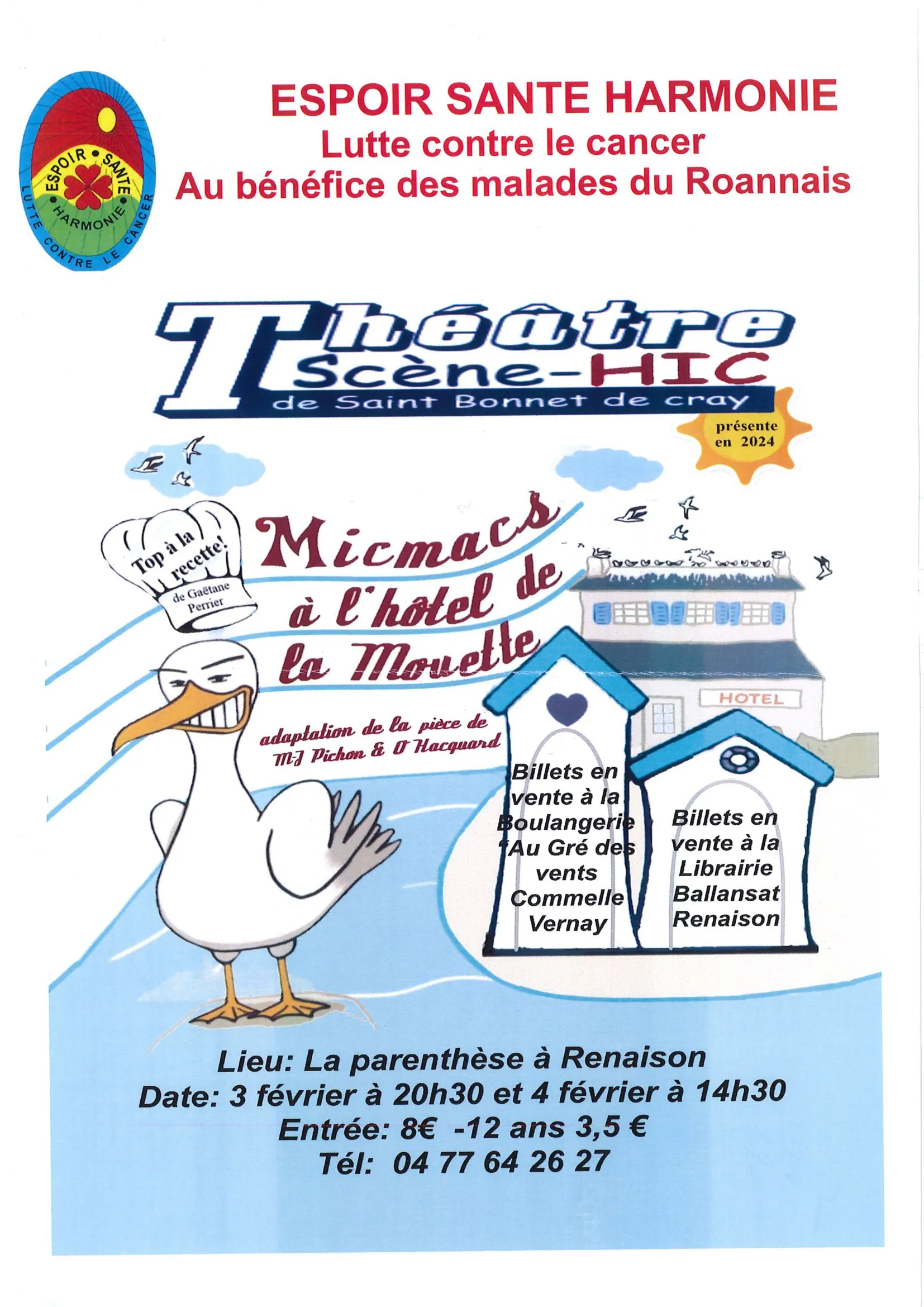 Samedi 3 et dimanche 4 février, venez partager un moment de rire avec la troupe Scène Hic de St-Bonnet de Cray, à la Salle de la Parenthèse à Renaison.