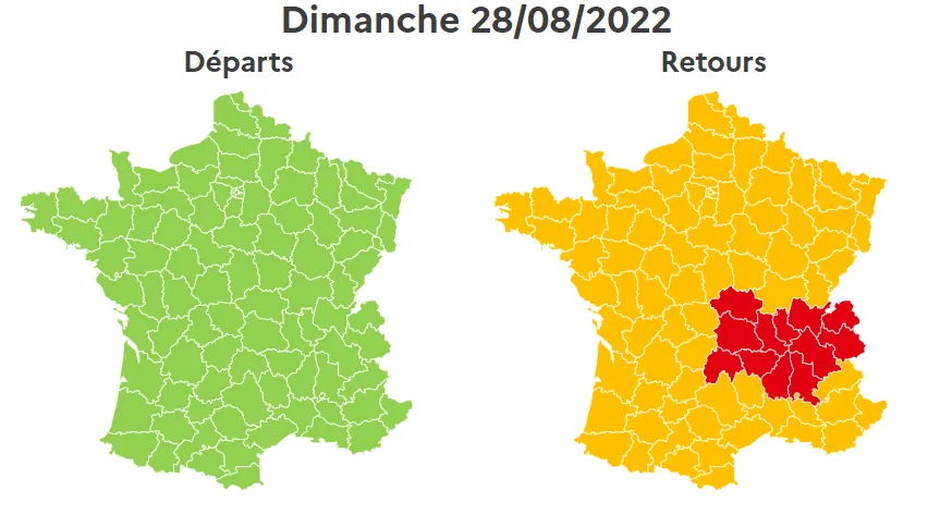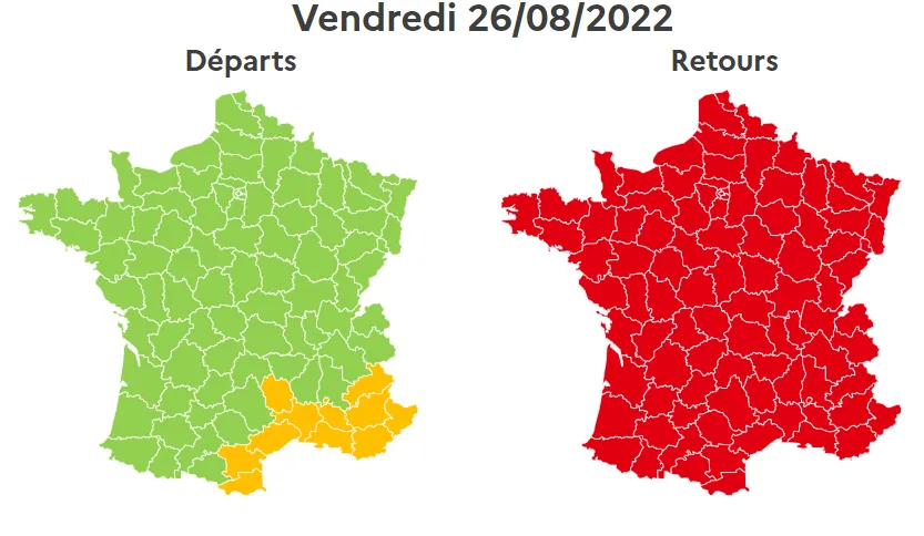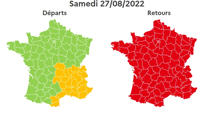 Pour les retours, la journée sera la même que celle de la veille, avec un samedi classé rouge, dans tout le pays. Il est conseillé d'éviter l’autoroute A7, entre Orange et Lyon, de 8h à 17h, entre Marseille et Orange, de 9h à 14h.